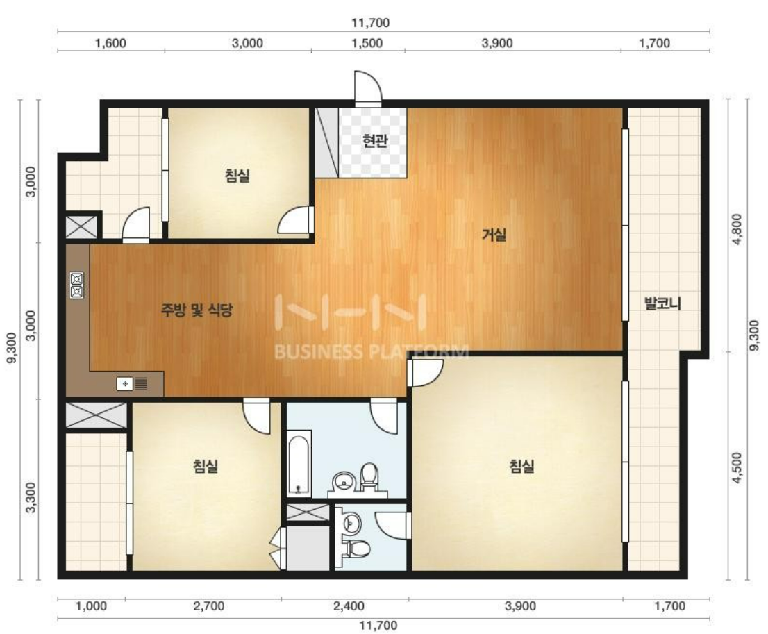 - 특히 주방 베란다가 넓어서 수납장을 효과적으로 배치해 활용가능합니다.
