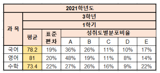 학업성취도의 평균점수가 높다는 것은 학생들의 면학분위기가 잘 형성되어 있다는 것을 말해줍니다.