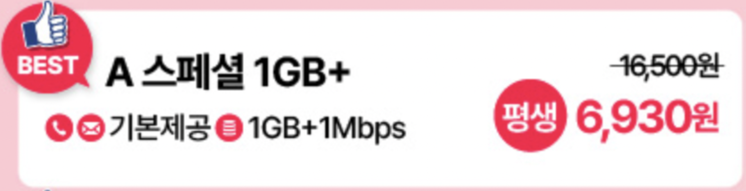 그런데 더 좋은 점은 이 요금제는 일정기간만 할인해 주는 것이 아니라 평생 할인되는 가격으로 6,930원이라는 점입니다.