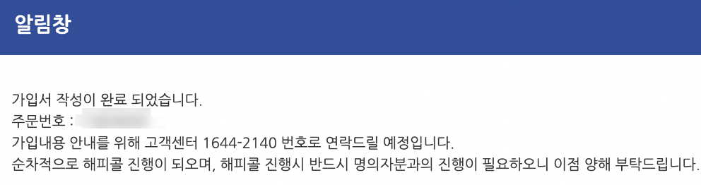 위와 같은 메시지가 나왔다면 정상 접수된 것입니다.